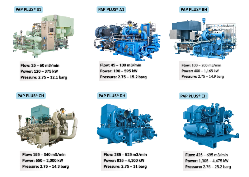 ซีรี่ส์เครื่องอัดลม PAP Plus® ของ FS-Elliott ซึ่งได้รับการออกแบบทางวิศวกรรมเป็นพิเศษ ผสานประสบการณ์ด้านการใช้งานและการออกแบบกว่า 60 ปี เข้าไว้ในโซลูชันที่มีความแข็งแกร่งสูง และดูแลบำรุงรักษาได้ง่ายเป็นพิเศษ เครื่องอัดลมรุ่นนี้รองรับการใช้งานได้หลากหลาย โดยมีรุ่นตั้งแต่ 120 kW ถึง 4,475 kW หรือ 160 แรงม้า ถึง 6,000 แรงม้า ในแบบหนึ่ง สอง สาม และสี่สเตจ สามารถให้แรงดันลมขาออกได้สูงสุดถึง 31 barg หรือ 450 psig